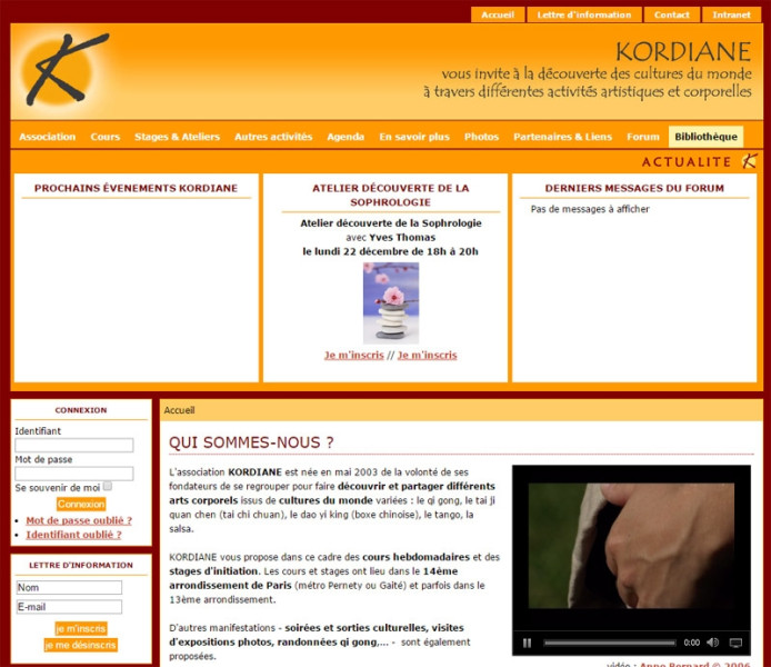 - Spécificités: Forum, agenda, bibliothèque, espace réservé aux adhérents, lettre d'information
